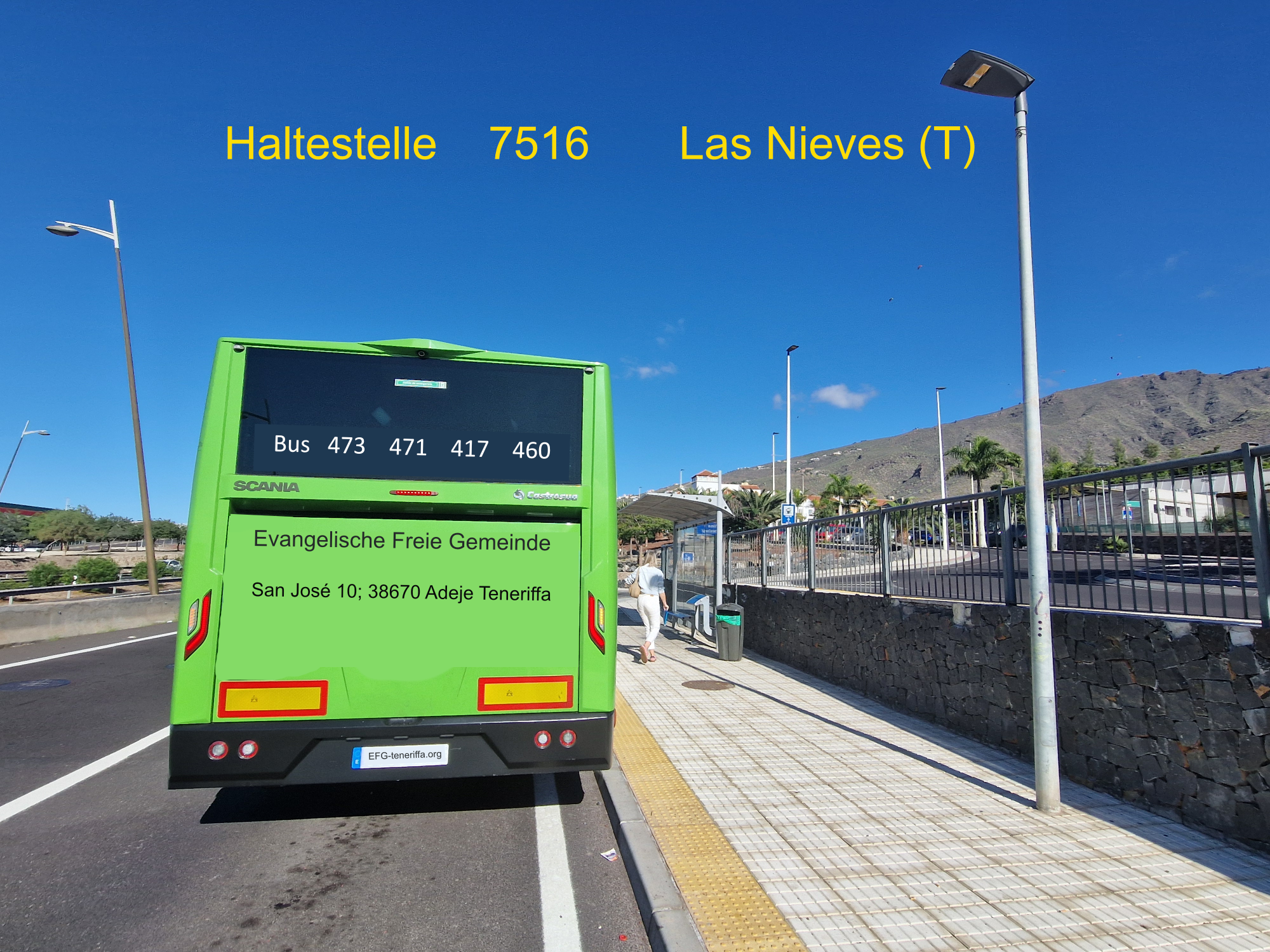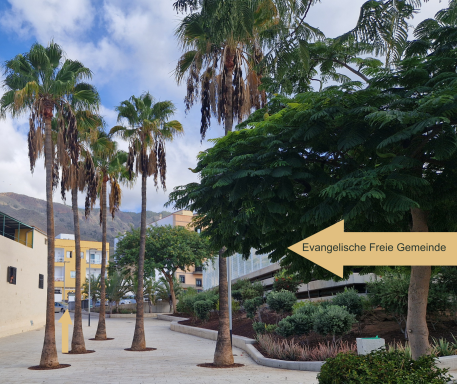 Sie finden uns im Ort Adeje im Ortsteil Los Olivos. Der Bus 447 hält an der Bushaltestelle "Colegio Los Olivos", 2 Gehminuten von unserer Gemeinde entfernt. Einfach nach einem gelben Haus Ausschau halten. Die Schilder "Iglesia Biblica Cristiana" und Evangelische Freie Gemeinde" sind an diesem gelben Haus angebracht.